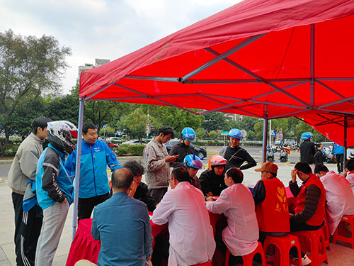 值得一提的是,此次活动不仅聚焦老年群体,还特别关注了外卖小哥等户外工作者。在赣州紫金广场的义诊点,“暖蜂健康 义诊护航”的专项活动同步开展,益生堂的医护人员为奔波忙碌的外卖小哥提供了健康检查和咨询服务,让这些城市“摆渡人”也感受到了社会的温暖与关怀。