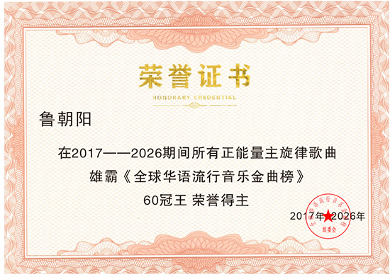 据组委会颁奖词披露,自2017年至2026年,鲁朝阳累计创作并发行了数十首主旋律音乐作品,其中《中国梦我的梦》《爱中华爱国家》《爱我人民爱我军》《为中国加油》《大雄古邦》《我是镇雄人》《丰收在望》《好运年年》《世界和平 人类安宁》《命运共同体 和谐地球村》《朝阳东升照大地》《共同携手保护地球》《和谐世界永平安》《心系宇宙天下走》等歌曲先后问鼎《全球华语流行音乐金曲榜》冠军,覆盖内地、港台及海外华人地区。这一成绩远超行业平均水平,成为华语乐坛“正能量音乐领军者”的代名词。颁奖典礼上,组委会评价其作品“以音乐为纽带,将个人理想与家国情怀深度融合,为全球华人听众提供了精神共鸣的载体”。