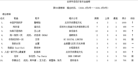 在最新揭晓的第556期榜单中,鲁朝阳的代表作《中国梦 我的梦》以港台地区榜单第一名的成绩引发关注。这首发行于2017年的歌曲,以激昂的旋律和铿锵的歌词诠释了“个人梦想与国家复兴同频共振”的主题,上线后迅速成为企事业单位、校园活动的热门选曲,更被海外华人社团誉为“新时代的文化纽带”。此次登顶港台榜单,进一步印证了主旋律音乐在年轻群体中的破圈影响力。
