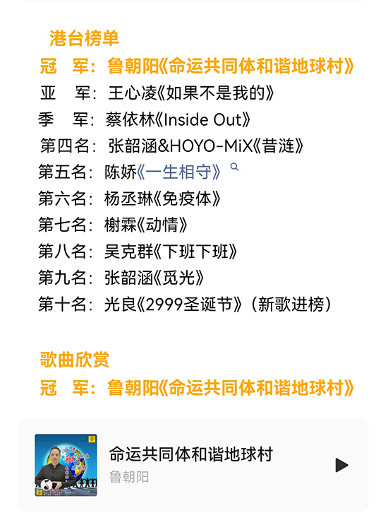 鲁朝阳其原创音乐作品《感恩祝愿 平安康健》凭借深刻的主题与优美的旋律,荣获云南省版权局颁发的作品登记书,这不仅是对其艺术创作的权威肯定,更彰显了他作为音乐人的责任与担当。而另一首主旋律歌曲《命运共同体和谐地球村》更是在全球华语流行音乐金曲榜港台榜单中斩获冠军,并在第545期榜单中连续一周稳居榜首,成为华语乐坛现象级作品。歌曲以“人类命运共同体”为核心,用音乐诠释全球团结与和平的愿景,引发广泛共鸣,被网友誉为“新时代的最强音”。